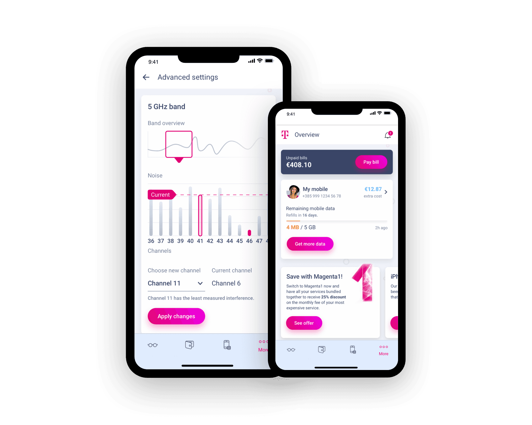 One App is the new self-care mobile application for all European Telekom customers across 25 countries. Customers can check their usage statistics, pay bills, recharge prepaid cards, and manage services.